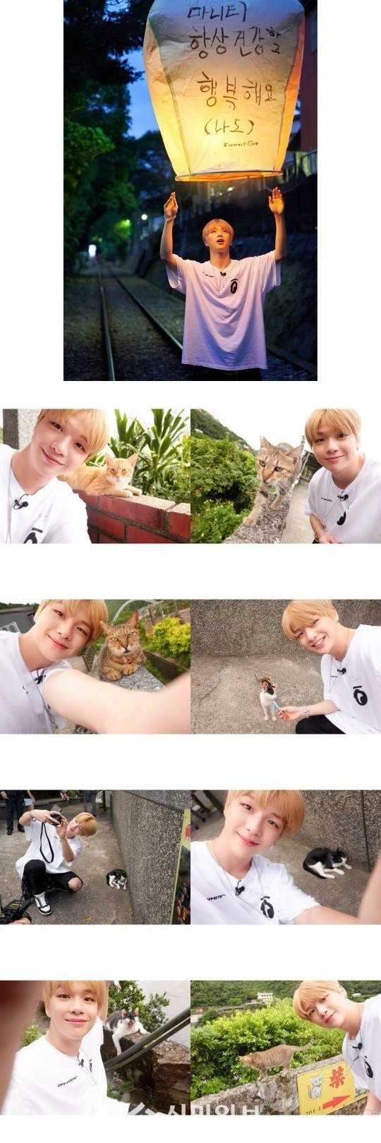 사진 속에는 강다니엘이 풍등을 날리는 모습부터 고양이와 즐거운 시간을 보내고 있는 모습까지 다양하게 담겨 시선을 사로잡았다.