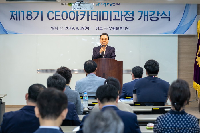 노현송 서울 강서구청장은 최근 우림블루나인(양천로 583) 3층에서 개최된 ‘제18기 CEO 아카데미 개강식’에 참석했다. CEO 아카데미는 오는 11월7일까지 진행될 예정이다. 사진은 노 구청장이 교육생들을 격려하고 있는 모습. (사진제공=강서구청)