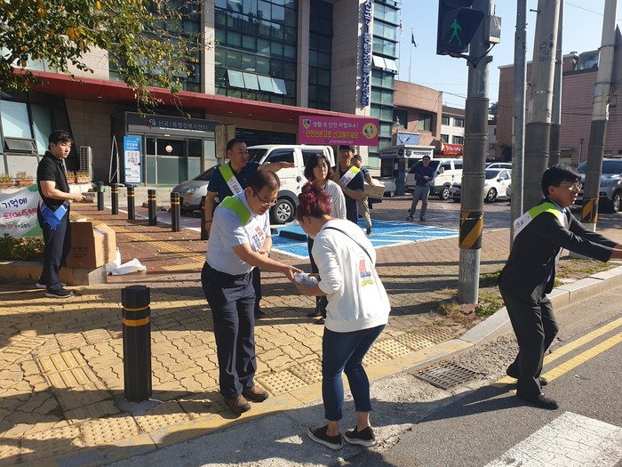 경기 의정부시 신곡1동 행정복지센터는 최근 허가안전과 공무원과 자생단체 회원 등 40여명이 참여한 가운데 신곡1동 행정복지센터앞 사거리에서 '안전점검의 날' 캠페인을 전개했다. 사진은 참여자들이 캠페인을 진행하는 모습.(사진제공=의정부시청)