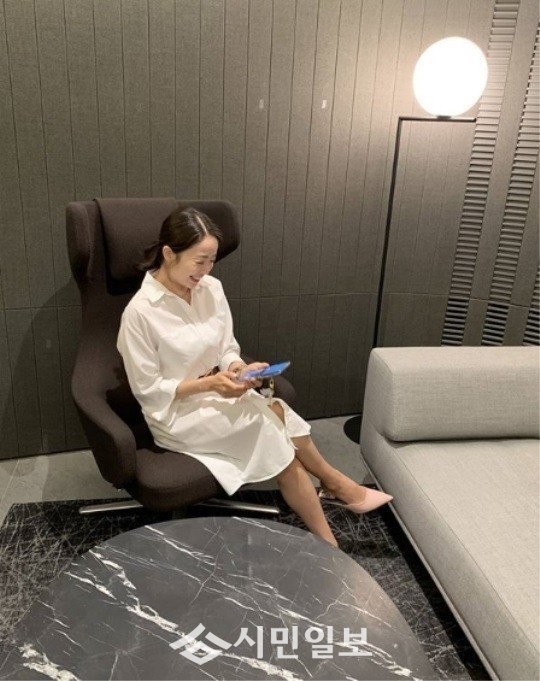공개된 사진 속 박은영은 휴대폰을 바라보며 해맑게 미소 짓고 있는 모습으로 팬심을 사로잡았다.