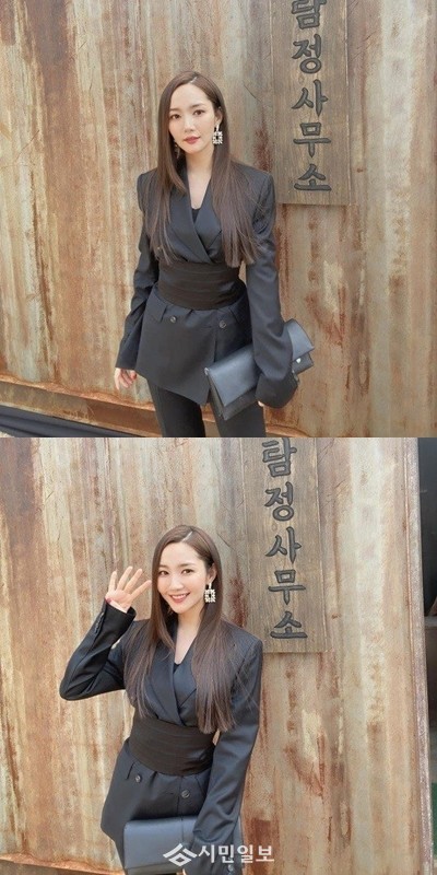 공개된 사진 속에는 올블랙 수트를 입은 박민영이 눈부신 미모를 뽐내며 '탐정사무소'라고 적힌 문패 앞에서 세련미 가득한 아우라를 드러내 감탄을 자아냈다.