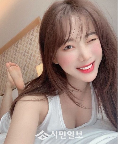 김한나는 자신의 인스타그램에 침대에 누워 하얀색 민소매 차림으로 윙크를 하는 사진과 함께 "또 먹으러 가즈앙"이라는 글을 올렸다.