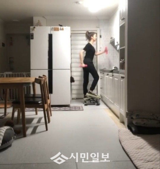 공개된 사진 속 윤세아는 주방 한켠에 마련된 운동기구 위에서 체력 단련에 열중하는 모습으로 검은색 운동복을 입고 탄탄한 몸매를 드러내 감탄을 자아냈다.