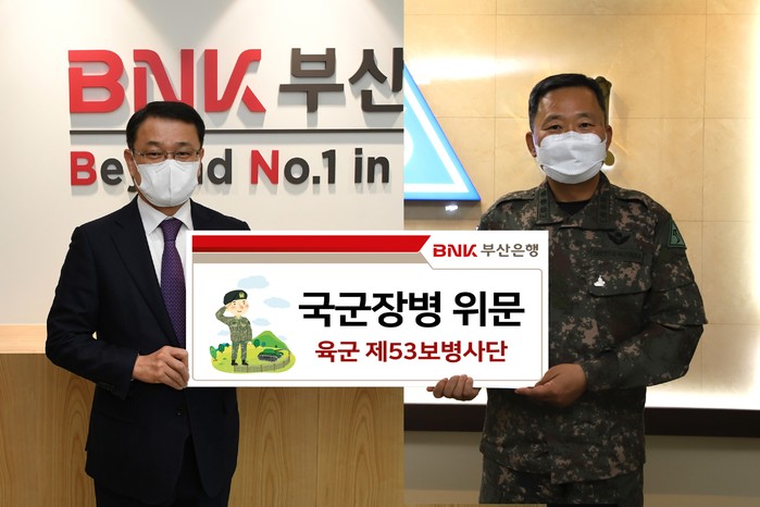 부산은행 손강 고객지원그룹장은 “코로나19등 어려운 여건 속에서 묵묵히 국가 안보를 위해 애쓰는 장병들에게 감사 인사를 드린다”며 “앞으로도 지역대표은행으로서 지역 향토부대에 대한 관심과 지원을 지속적으로 이어나가겠다”고 전했다.