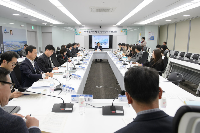 세종시가 29일 시청 집현실에서 '아동친화도시 정책 추진상황 보고회'를 열고 지정 3년차를 맞는 아동친화도시 5대 분야·57개 과제에 대한 소관 부서별 추진 성과를 점검하고 향후 개선방안을 논의했다. 사진은 이춘희 시장과 위원들의 회의 모습. (사진제공=세종시청)