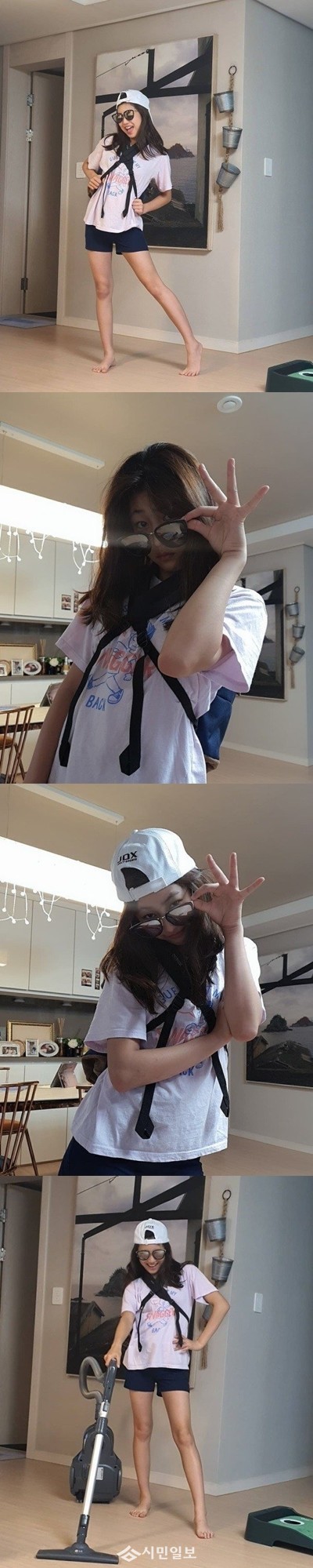 이를 본 박연수는 "우리집 분위기 메이커. 엉뚱한 14살. 청소기는 왜 붙잡고 있는 거니"라고 의문을 표했다.
