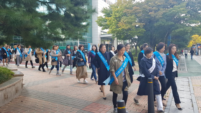 서울 광진구는 최근 왕십리역 일대에서 시민을 대상으로 ‘민·관 합동 청렴캠페인’을 실시했다. 이번 캠페인에는 광진구, 광진구시설관리공단, 광진문화재단, 성동구, 성동광진교육지원청 등의 공공기관과 지역 학부모 청렴지킴이 등 주민들로 구성된 ‘반부패 민·관 네트워크’가 참여했다. 사진은 캠페인 참여자들이 길거리 홍보를 진행하는 모습.(사진제공=광진구청)