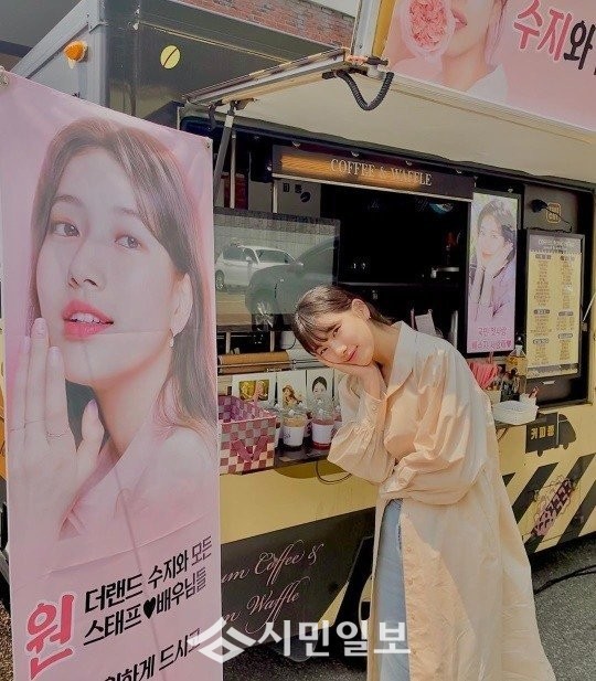 가수 겸 배우 수지는 자신의 인스타그램에 "오 이럴수가 ! 고마워요 ! 힘내서 촬영할게요 ! ♥! ! ! (행복) (감사)"라는 글과 함께 한 장의 사진을 게재했다.