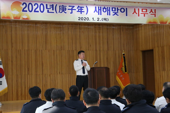 김동권 서장은 시무식에서 지난 한해를 뒤돌아보고 밝고 희망찬 새해를 맞는 신년사를 발표하였다. 또한 직원 간 소통과 화합을 강조하고, 공무원으로서 품위유지에 신경써줄 것을 당부했다.