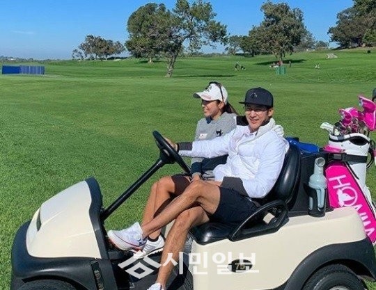 공개된 사진 속 이보미는 골프 전지 훈련지에서 남편 이완과 함께 다정한 모습을 드러내 달달함을 자아냈다.