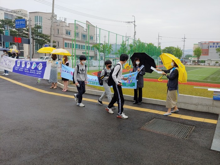합천교육지원청(교육장 정종화)은 5. 20.(목) 지역 유관기관과 함께 청렴 및 학교폭력예방 캠페인을 실시하였다. 이날 캠페인은 요즘 학교폭력의 발생 원인이 욕설, 비속어 등 학생들의 그릇된 언어사용에서 비롯된다는 점에서, 청소년 시기부터 바른 언어사용과 청렴한 삶이 중요함을 알게 하고자 실시하였다.