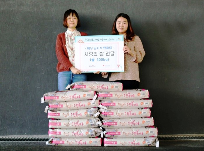 배우 김지석 공식 팬클럽 '보석상자'와 일본, 홍콩 등 해외 팬클럽 회원들이 최근 서울 용산복지재단을 방문해 소외된 이웃을 위해 써달라며 '사랑의 쌀' 300kg을 전달했다. 사진은 팬클럽 관계자들이 쌀을 전달한 후 기념촬영을 하고 있는 모습. (사진제공=용산구청)