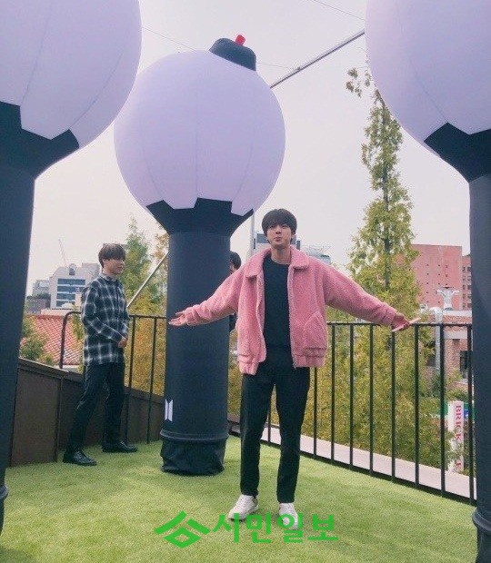 공개된 사진 속 진은 방탄소년단의 응원봉인 아미밤 사이에 서서 브이를 하기도 하고 팔을 양 쪽으로 벌리는 포즈를 취하기도 했다. 진의 근처에 뷔와 지민, 정국이 장난을 치며 진이 사진찍는 것을 방해하는 모습도 보인다. 그들의 귀여운 장난에 진은 사진 좀 찍자며 부탁하기도 했다.