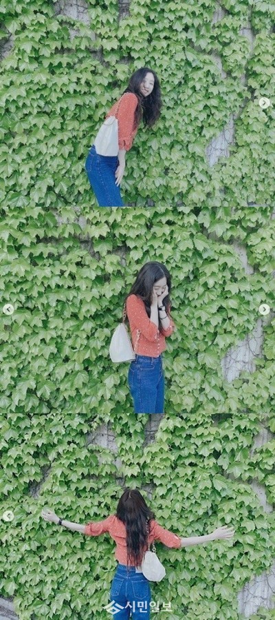 공개된 사진 속 정려원은 청초한 미모를 뽐내며 다홍빛 블라우스에 청바지를 입고 담쟁이 덩굴 앞에서 장난기 가득한 셀피를 남겨 남심을 사로잡았다.