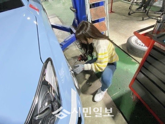 공개된 사진 속에는 지숙이 직접 타이어를 갈고 있는 모습이 담겨 감탄을 자아냈다.