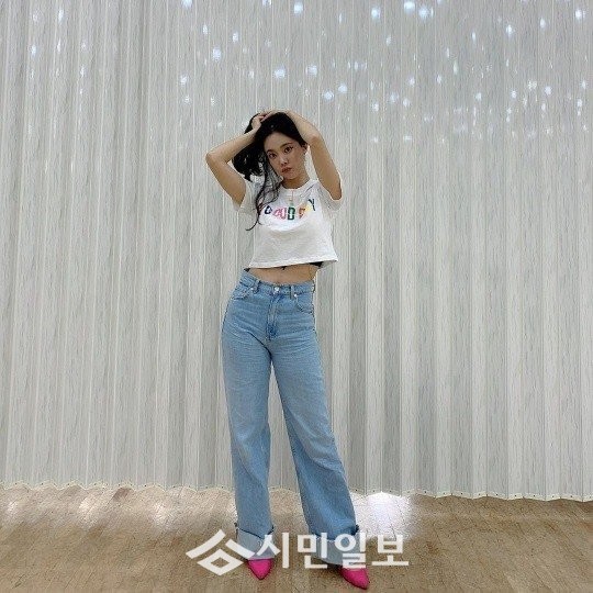 공개된 사진 속 김나희는 크롭티셔츠에 청바지를 입고 늘씬한 몸매와 함께 개미 허리를 과시해 팬심을 사로잡았다.
