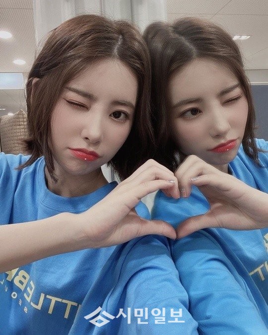 공개된 사진 속 기희현은 하늘색 티셔츠를 입고 요정 미모를 뽐내며 거울로 손하트를 만들며 윙크로 애교를 드러내 팬심을 사로잡았다.