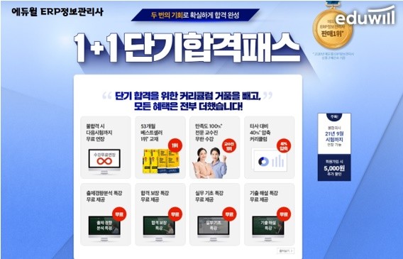 [시민일보 = 여영준 기자] 종합교육기업 에듀윌(대표 박명규) ERP정보관리사는 대표 과정인 1+1단기 합격패스의 신강의 업데이트 소식을 전했다.