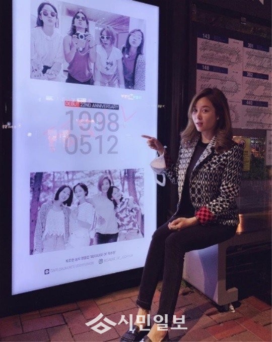 공개된 사진 속 옥주현은 여전한 요정 미모를 뽐내며 핑클 데뷔 22주년을 축하하는 버스정류장 전광판 옆에서 인증샷을 남기고 있는 모습으로 훈훈함을 자아냈다.