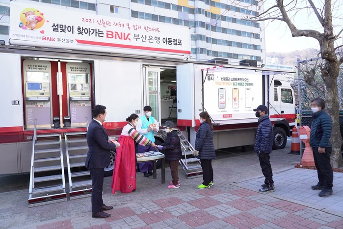 부산은행 김용규 마케팅추진부장은 “설날을 맞아 부산은행 이동점포가 준비한 찾아가는 금융서비스가 지역의 시니어 고객들에게 조금이나마 도움이 되길 바란다”며 “앞으로도 부산은행은 금융소외지역을 찾아가 편리하고 유용한 금융서비스를 이어가겠다”고 전했다.