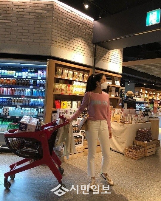 배우 왕빛나는 자신의 인스타그램을 통해 "맨날 택배랑 배달로 해결하다가.. 오랜만에 직접 #장보기 핑크니트입고 #아주잠깐의외출"이라는 글과 함께 한 장의 사진을 게재했다.