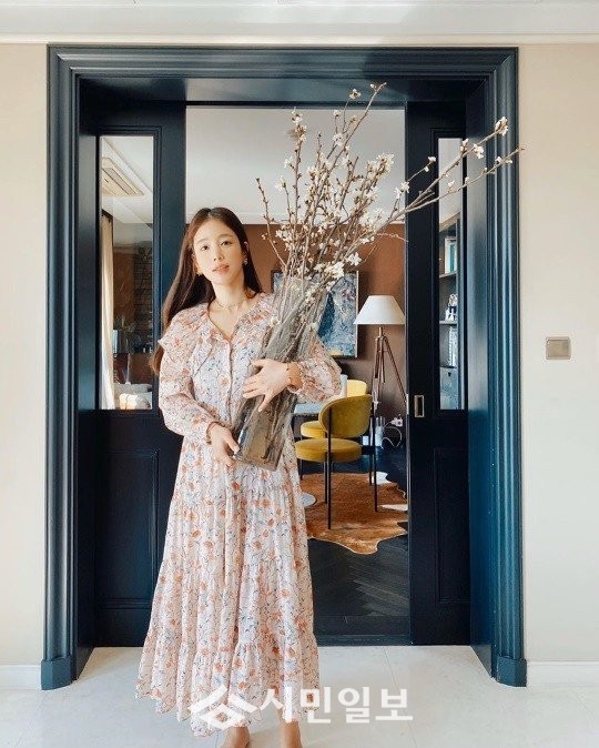 배우 기은세는 자신의 인스타그램에 "집안에 찾아온 봄 The spring comes with cherry blossoms"라는 글과 함께 사진을 게재했다.