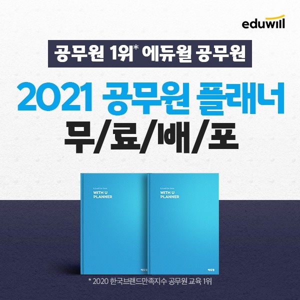 [시민일보 = 여영준 기자] 종합교육기업 에듀윌(대표 박명규) 공무원이 9급공무원 등 공무원 시험을 준비하는 공시생을 위해 매일 선착순 250명 대상 스터디 플래너인 '2021 공무원 플래너'를 제공한다.