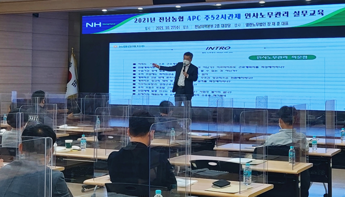 농협지역본부(본부장 박서홍)는 27일 지역본부 2층대강당에서 관내 지역농협 APC(농산물산지유통센터)사업장 관리자 50여명을 대상으로 주52시간 근무제 실시확대와 관련하여 노동관계법령 이해제고를 위한 집합교육을 실시했다.