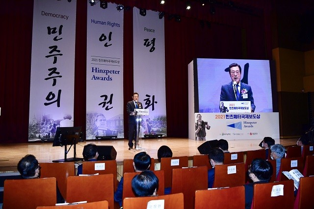 힌츠페터 국제보도상은 5·18민주화운동을 전 세계에 알린 故 힌츠페터의 기자정신을 기리기 위해 제정된 상으로, 이날 시상식은 코로나19로 인해 외국인 수상자가 참석하지 못해 대리수상 형태로 진행됐다.