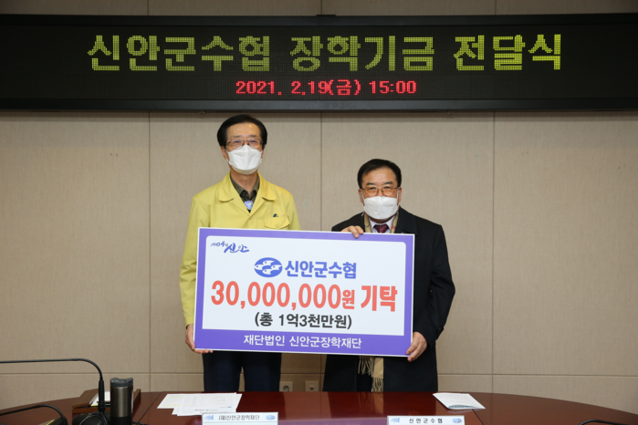 한편 신안군수협은 신안군장학재단에 2017년도부터 장학기금을 기탁해 왔으며 지금까지 총 1억3천만원을 후원했다.