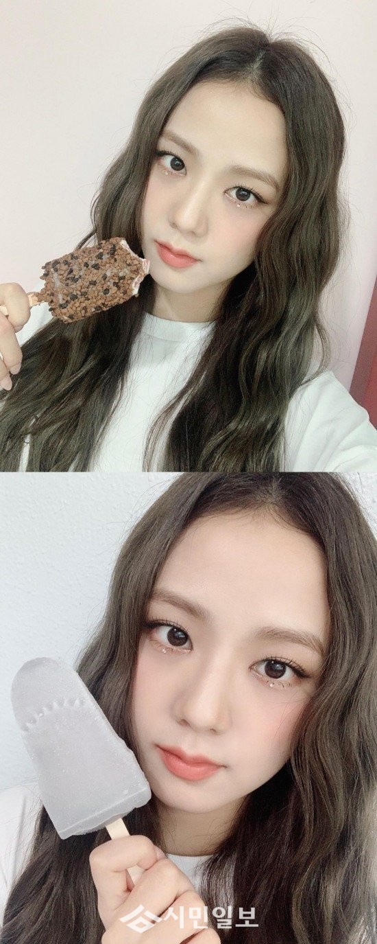 사진 속에서 지수는 아이스크림을 한 입 베어 문 채 상큼한 미모와 함께 새침한 아우라를 드러내 팬심을 사로잡았다.