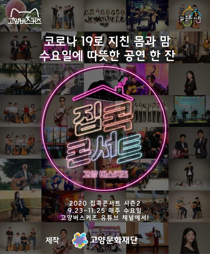 글로컬 아티스트와 함께하는 첫 번째 시도로 글로컬 아티스트의 무대를 언제 어디서나 온라인으로 즐기는 2020 하반기 <고양버스커즈 집콕콘서트>(이하 <집콕콘서트>)가 마련돼 있다.