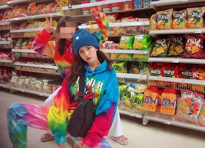 공개된 사진 속 전소미는 마트에서 포즈를 취하고 있다.
