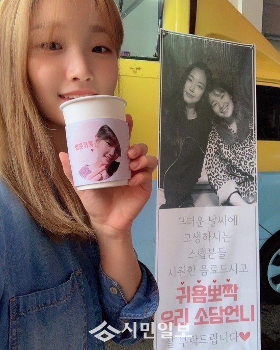 사진 속에서 박소담은 커피차 앞에서 커피를 들고 상큼한 미모와 함께 화사한 아우라를 드러내 감탄을 자아냈다.