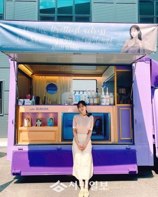 공개된 사진 속 임수향은 커피차 앞에서 환한 미소를 지으며 상큼발랄한 미모를 드러내 감탄을 자아냈다.
