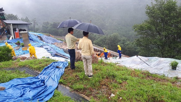 이 군수는 이날 급경사지 붕괴위험지역 정비사업장 외 2곳, 산사태우려지역 2곳, 대원사계곡, 저호배수장, 신안원지둔치 주차장 등을 확인했다.