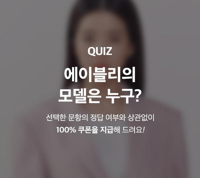 에이블리는 1일 “에이블리의 새로운 모델은 누구?” 퀴즈를 출제하며 사전 신청 이벤트를 시작했다. 이벤트 페이지에서 김태리, 마동식, 탐 크루즈 세가지 보기 중 한가지 답안을 선택해 참여 가능하다. 이벤트에 참여한 고객에게는 정답 여부와 관계없이 에이블리 앱 내에서 현금처럼 쓸 수 있는 쿠폰을 전원 지급할 예정이다.