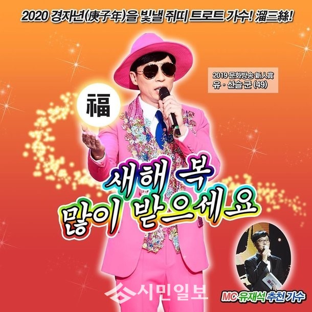 MBC ‘놀면 뭐하니’ 인스타그램에는 “2020 경자년. 쥐띠 스타 유산슬 새해 인사 드립니다. 새해 복 많이 받으세요 #복구슬 #2019문화방송신인상 #유재석추천가수”라는 글과 함께 사진이 게재됐다.