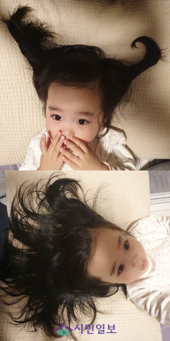 아나운서 한석준의 딸 공식 인스타그램에는 "목욕후 사빈 #사빈아미안해 #넘귀여워서그랬어 #헤어스타일 #머리카락부자 #넘치는장난"이라는 글과 함께 사진이 게재됐다.