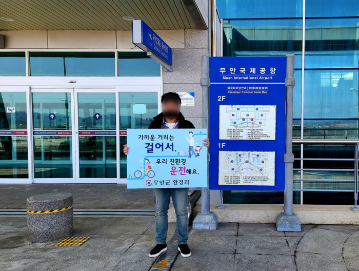 이번 캠페인은 영산강유역환경청, 전라남도와 함께 전남 22개 시군에서 시행하고 있으며, 무안군은 미세먼지 발생 빈도가 높은 12월부터 3월까지 무안국제공항과 무안읍 불무공원에서 ‘가까운 거리는 걸어서, 우리 친환경 운전해요’ 등의 문구로 미세먼지 저감을 홍보하고 있다.