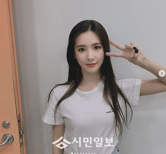 사진 속 미연은 긴 생머리 흰색 반팔 티셔츠에 청바지를 입고 브이 포즈를 취하고 있는 모습으로 남심을 사로잡았다.