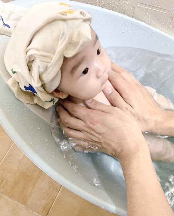 사진에는 이필모가 두 손으로 조심스럽게 아들을 목욕시키는 모습이 담겨 훈훈함을 자아냈다.