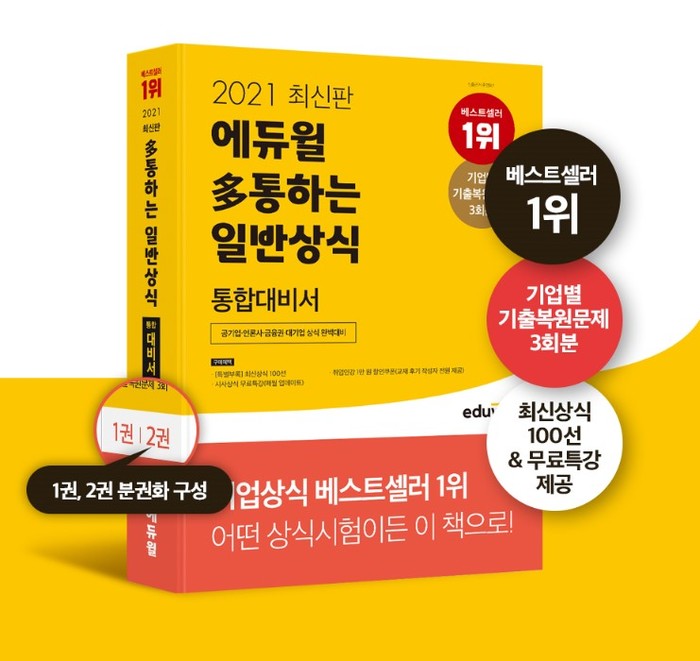 [시민일보 = 여영준 기자] 종합교육기업 에듀윌(대표 박명규)은 ‘2021 최신판 에듀윌 다(多) 통하는 일반상식 통합대비서가 취준생들 사이에서 꾸준히 인기를 얻고 있다고 밝혔다.