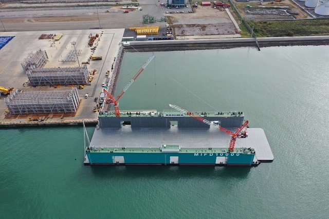 | ▲ 삼호읍 현대삼호 조선 해상도크 / 드론항공촬영 =영암군 제공 |