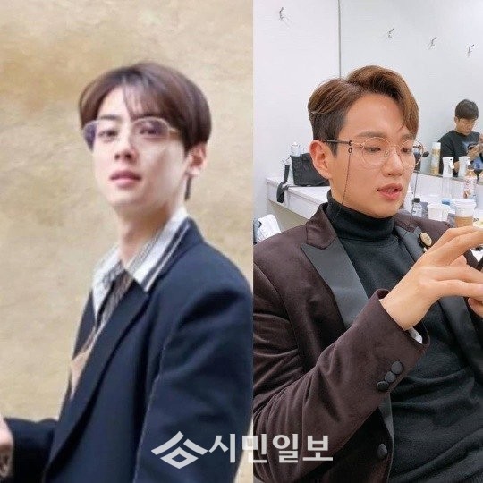 비교 사진 속에는 안경을 쓰고 슈트를 입고 있는 차은우와 장성규의 모습이 담겨 웃음을 자아냈다.