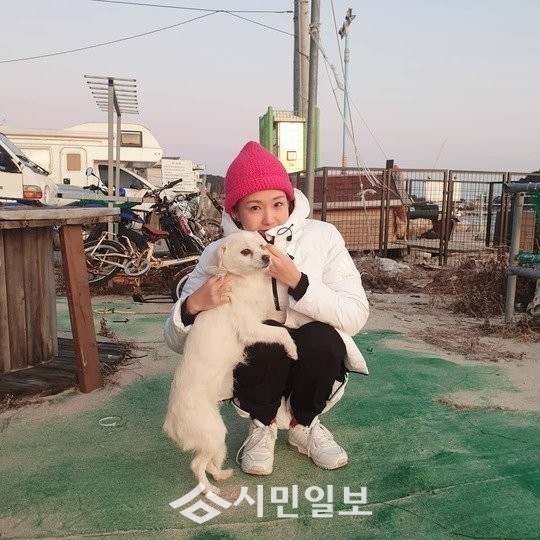 사진 속에는 분홍색 비니를 착용한 오정연이 반려견과 다정한 모습을 드러내 훈훈함을 자아냈다.