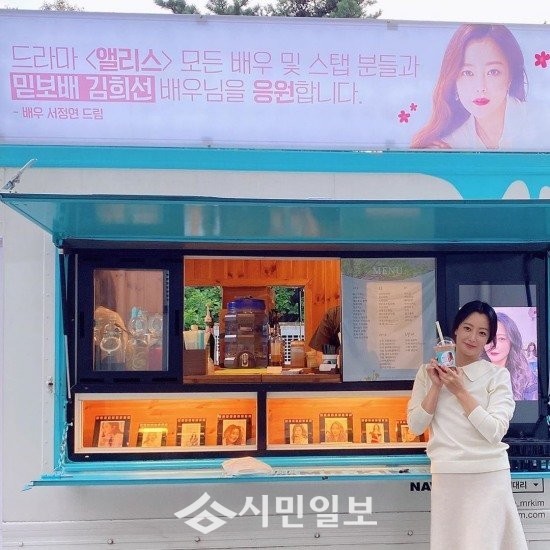 공개된 사진 속에는 김희선이 물오른 미모와 함께 화사한 아우라를 뽐내며 서정연이 보내준 간식차를 배경으로 인증샷을 남기고 있는 모습이 담겨 훈훈함을 자아냈다.