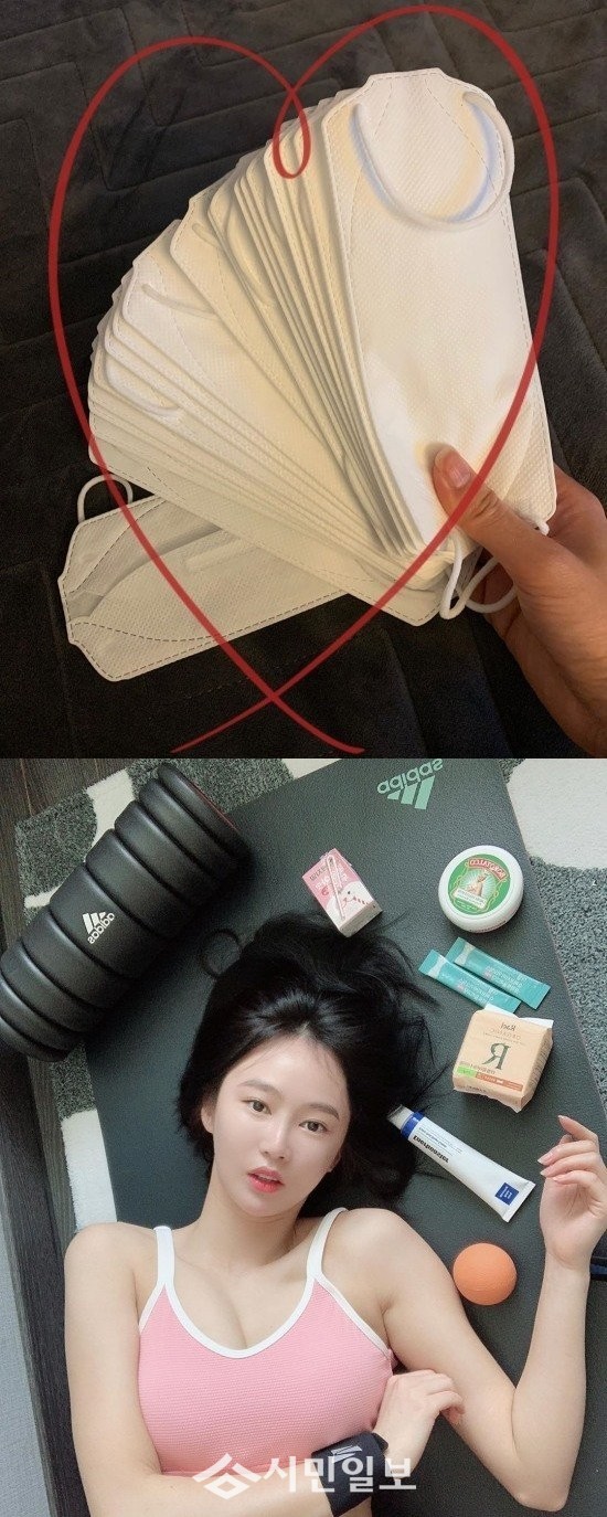 배우 오초희는 자신의 인스타그램에 "마스크 선물에 눈물날 뻔. 한 장 남아서 걱정했는디"라는 글과 함께 사진을 게재했다.