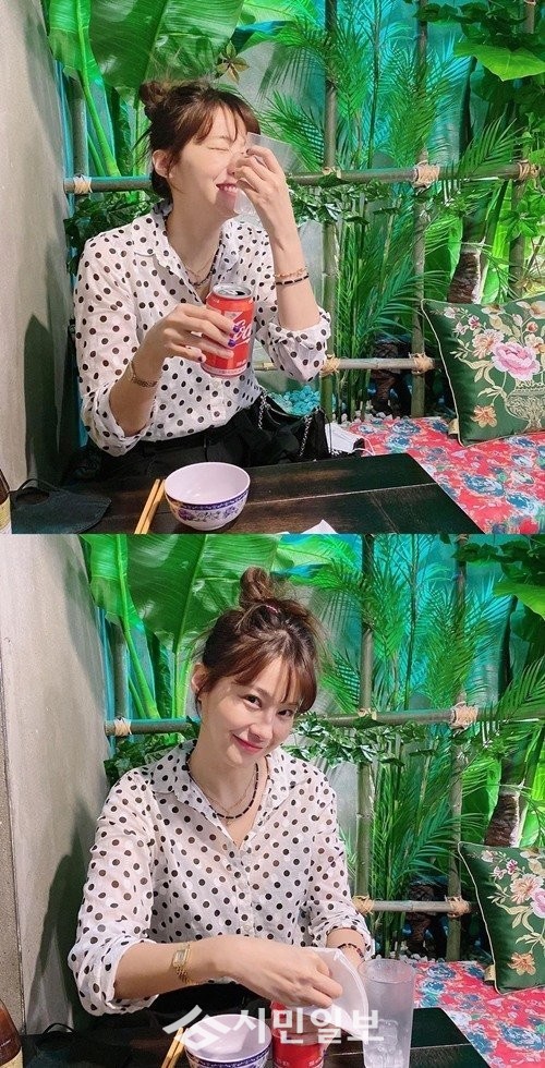 배우 유인영은 자신의 인스타그램을 통해 "우리 언니는 내가 바보 같이 웃는게 이뿌단다"는 글과 함께 사진 두 장을 게재했다.