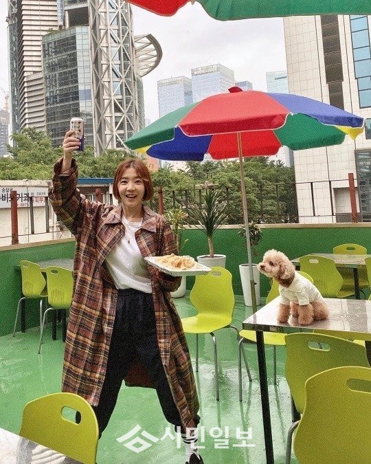 배우 신다은은 자신의 인스타그램에 "친구가 제공해 준 우리만의 옥상에서 올겨울, 유부녀 월드로 들어온다는 친구를 축하하며 - 저하늘에 건배.. #결혼이란 #오색파라솔같은거랄까 #신난다은"이라는 게시글과 함께 한 장의 사진을 게재했다.